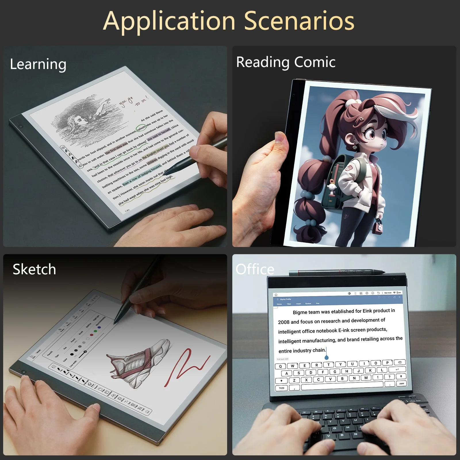 Bigme inkNote color Lite--Kaleido 3 Color E ink Tablet is an ideal device for reading comics and working on the go. It features a latest kaleido 3 screen for a vivid color display, with text resolution of 300PPI in black & white and 150PPI in color. It is equipped with dual cameras, voice-to-text, handwriting-to-text, and photo-to-text capabilities, along with support for 36 languages. With its 4000mAh battery, the tablet lasts long periods of time for a reliable mobile office experience.